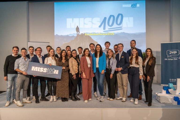 Vergangenes Wochenende hat in Salzburg die Bundeskonferenz der Jungen Volkspartei stattgefunden. Delegierte aus ganz Österreich kamen zusammen, um Ideen und Schwerpunkte für den größten Zukunftsprozess in der Geschichte der JVP zu entwickeln. Ziel der „Mission 100“ ist es, gemeinsam 100 Ziele bis zum 100. Geburtstag der JVP zu definieren.
